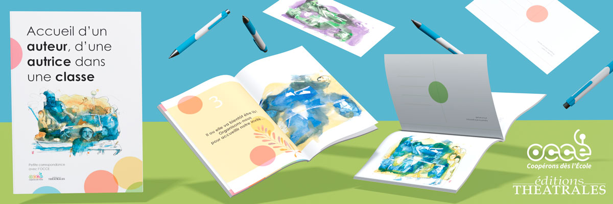 Imaginé comme une « petite correspondance fictive » entre une classe et l’OCCE, cet ouvrage coloré se présente sous forme de lettres et cartes postales (détachables), illustrées par Vincent Debats. Il est destiné, bien sûr aux enseignants, mais assurément aussi aux enfants et adolescents à l’école, aux auteurs invités et à toute personne curieuse des relations entre monde de l’école et celui de la littérature de jeunesse.